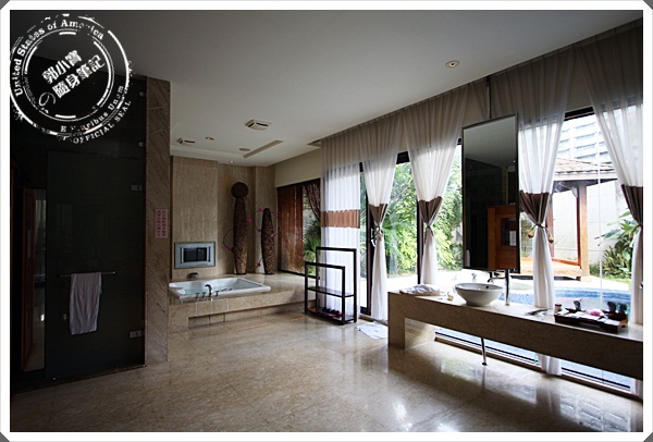 | 旁邊還有個浴缸,可以放熱水澡,來洗個三溫暖,一下游泳一下泡澡,根本就是三溫暖的規格了。 |