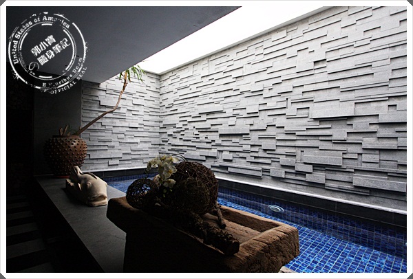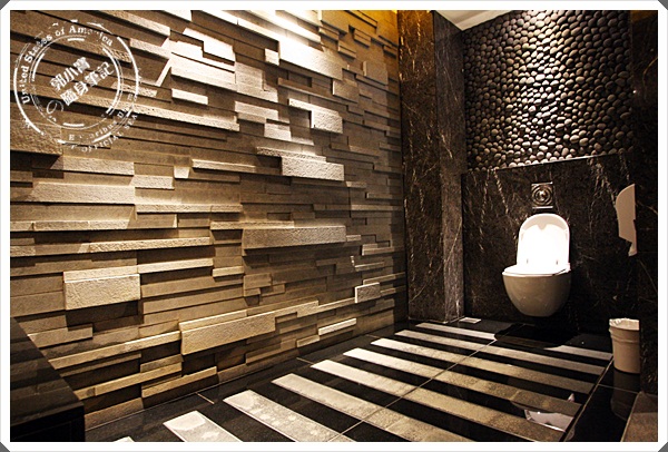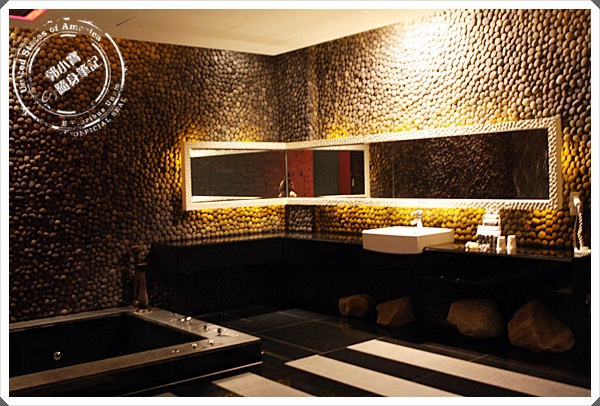 | 牆壁則是使用原石崁入,感覺就像是來到海洋世界或是溫泉鄉的感覺,鏡子也超大的,早上起床不用跟肥摸