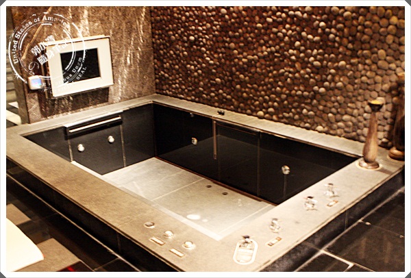 浴缸旁邊還有台小銀幕,但是那天似乎不能轉台,也不知道什麼情況。 |