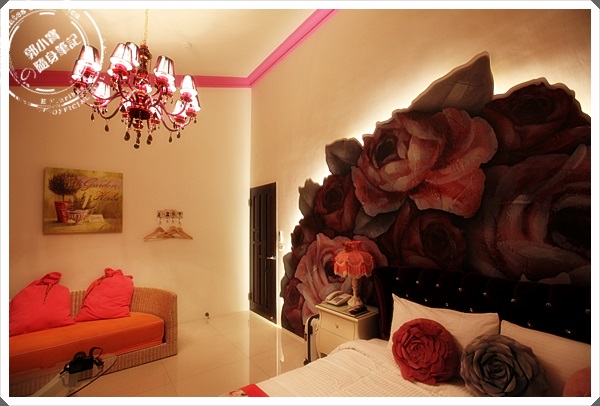 我跟摸摸入住的就是玫瑰園了。 當天就只有我們一對情侶,所以這房間理所當然就是我們的了~哈。