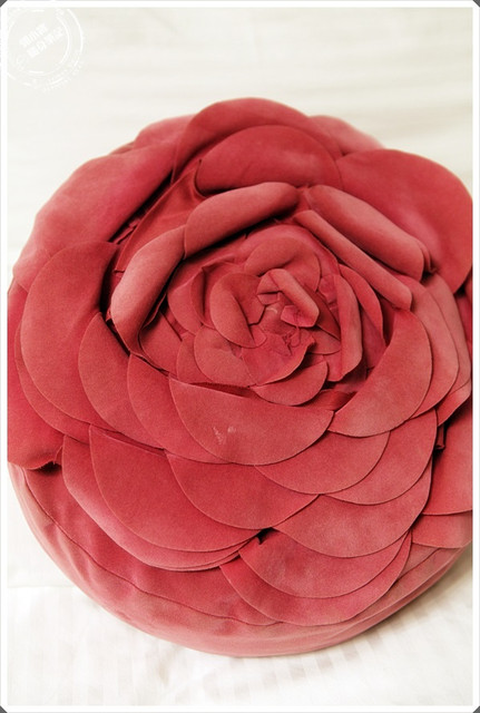 | 床上的三朵玫瑰花抱枕好漂亮,來這邊錯過櫻花時期沒關係,玫瑰房裡還有玫瑰花。 |