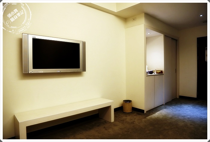 | 床的對面沒有過多的裝飾,一台42吋的液晶電視跟桌櫃,中間剛好可以放我們的兩個超大行李。 |