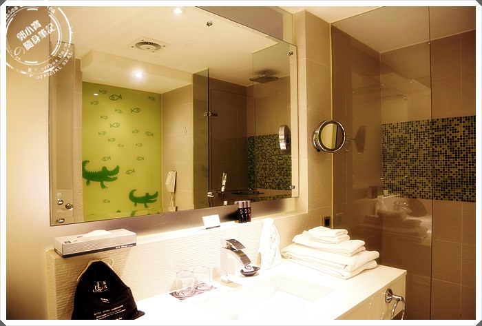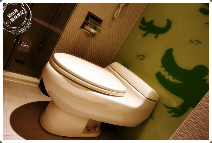 | 差點就忘記跟大家報告一下,連廁所也是有鱷魚設計的啦XD,洗手檯後方就是馬桶了。 |