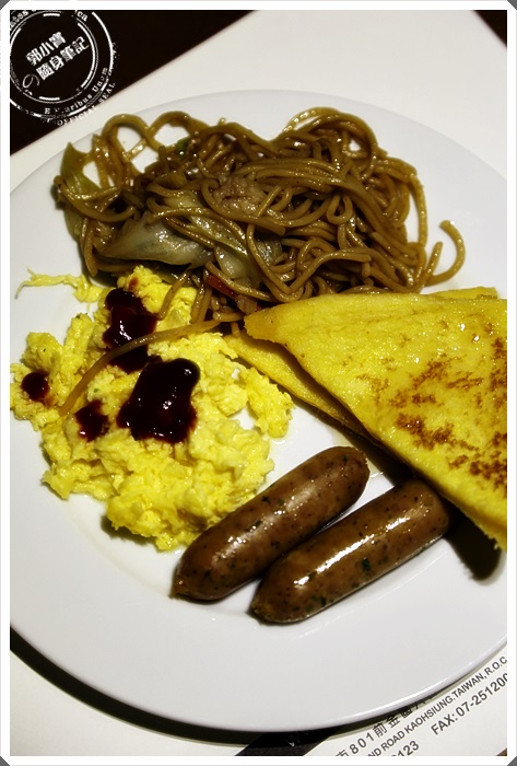 | 炒麵炒的好好吃唷,味道非常的重口味,還有法國吐司,當場就把炒麵跟德國香腸一起放進法國吐司裡面當成吵麵土司來吃,真的是好好吃的早餐啊! |