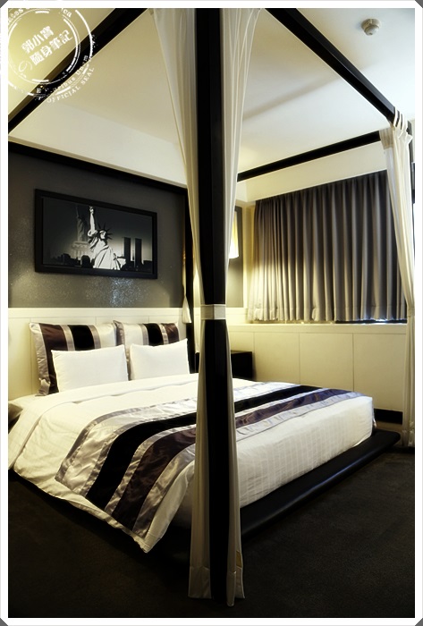 還很幸運的可以參觀到其他樓層的房間,這種黑白紐約風格我也滿喜歡的,而且還是公主床耶@@
