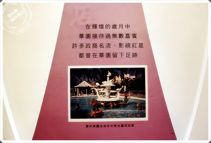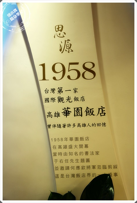 | 看了華園飯店的大廳歷史介紹才發現,華園飯店是台灣"第一家"國際觀光飯店的說,比台北圓山大飯店還早耶,而且那時候好像大飯店都一定要于右任大師題匾才算是大飯店,但是這個已經讓我夠驚訝的了,原來高雄的華園飯店才是台灣最老的國際觀光大飯店@@ |