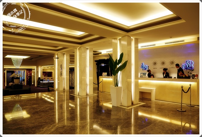 | 華園飯店的櫃檯小姐都挑的滿優的@@,整個大廳看起來非常具有時尚感,大門口還有放一件非常豪華的婚紗,地板打蠟打的啵亮的,都反光了呢! |