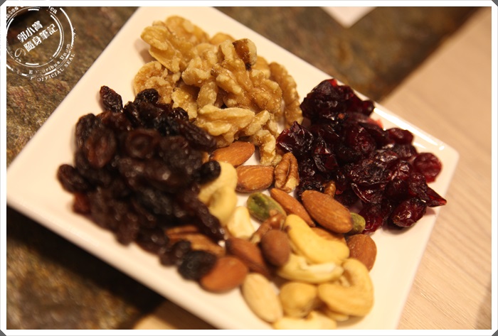 一旁還有小圓桌,可見得今天的陣容頗為龐大,桌上也有準備了搭配酒品的堅果跟起司火腿類。