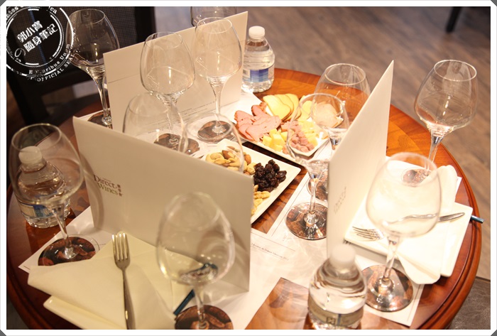 桌上還有堅果類跟法式麵包及起司火腿搭配酒品,每一種食物搭配紅白酒都有不同的風味,當然也會建議我們每款紅白酒適合搭哪些餐廳美食。其實桌上都準備的超級彭派了,樂事會Direct Wines也會當場推出促銷酒品,價格可是跟外面比起來真的事又便宜了許多,