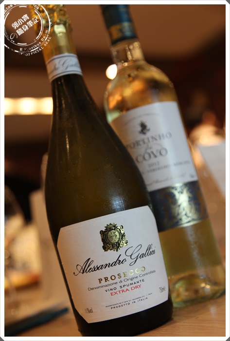 第一隻品嘗的事白酒,Alessandro Gallici Prosecco Brut NV,我個人對這一隻非常的喜愛,有淡雅的果香味且風味非常的豐富,氣泡也非常的綿密,喝起來倒是很像香檳不像是白酒,我很喜歡它在口中的跳耀感,非常適合在餐前飲用,喝完後整個味口都大開了XD