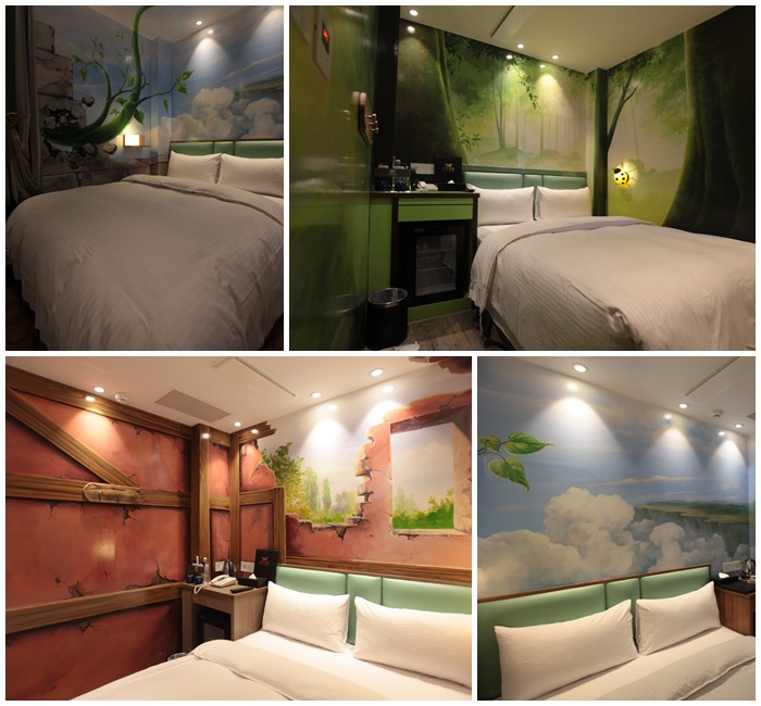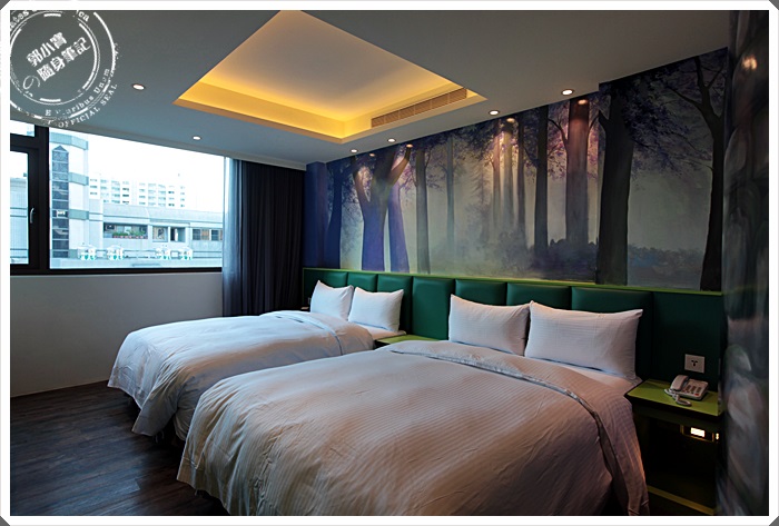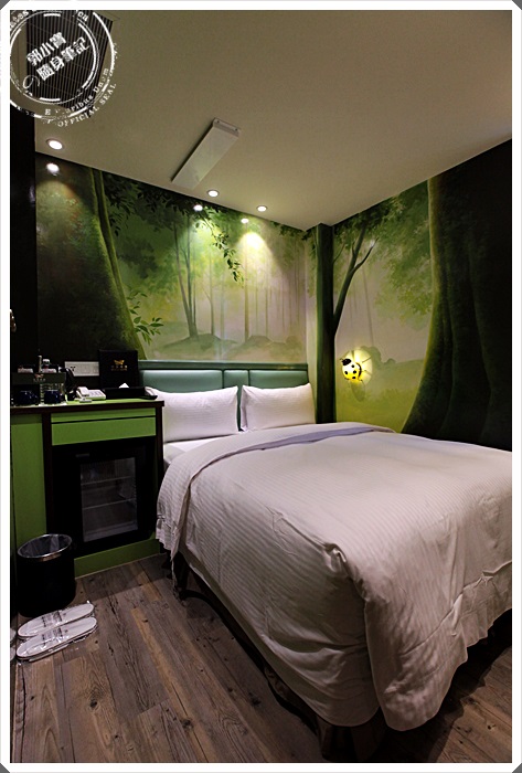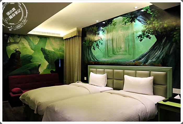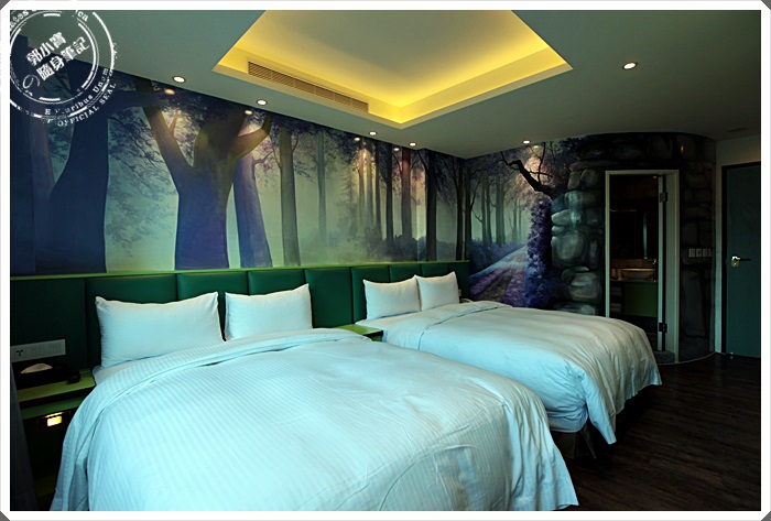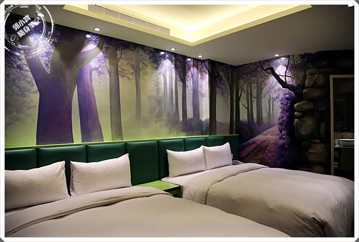 我們這次的房間是四人房,擁有兩大張的床,是迷幻森林系的房間,早上醒來的時候真的感覺非常的迷濛XD