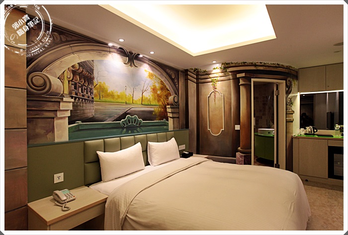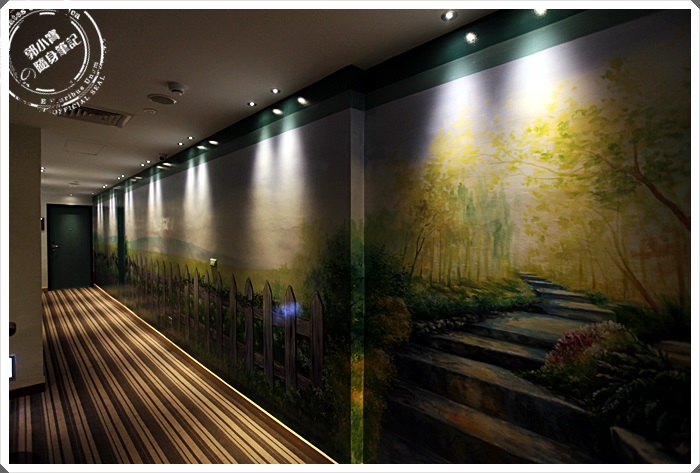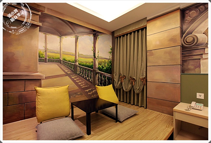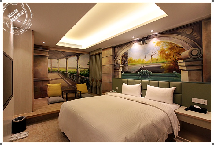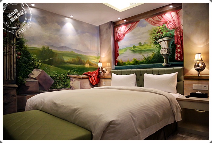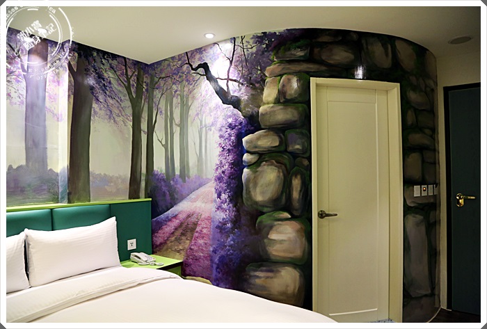 | MOMO很喜歡的田園風,都是以歐洲國家為主,世奇商旅的房間幾乎大部份的房間格局都不一樣,所以3D壁畫也跟著不一樣的格局來作風格上的調整。 |