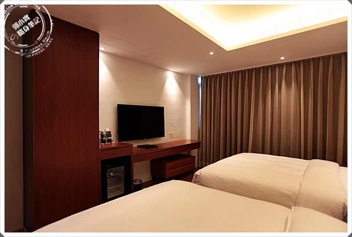 床頭兩邊都有插頭相當的貼心,而且都是國際萬用的歐規插座,且隔音做得相當的好,因為世奇商旅外面就是車水馬龍的裕誠路跟巨蛋商圈,關起門跟窗戶幾乎就與世隔絕了。 |