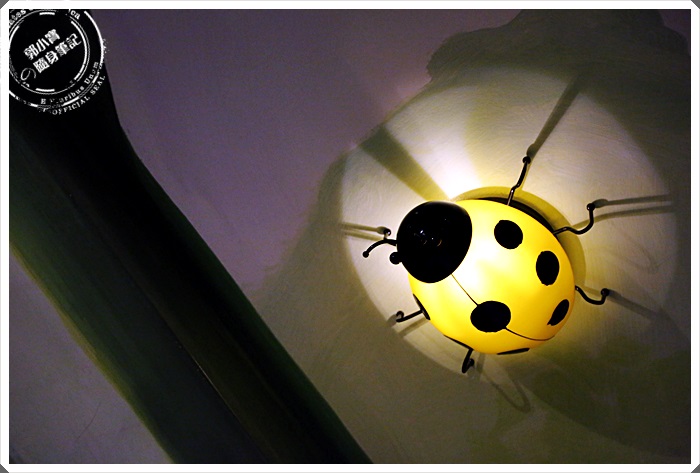 每個房間的燈飾都有特別挑選過的樣子,晚上關起燈開啟這一盞瓢蟲燈超像在森林裡面露營的,還有一隻螢火蟲陪伴我們入睡。 |