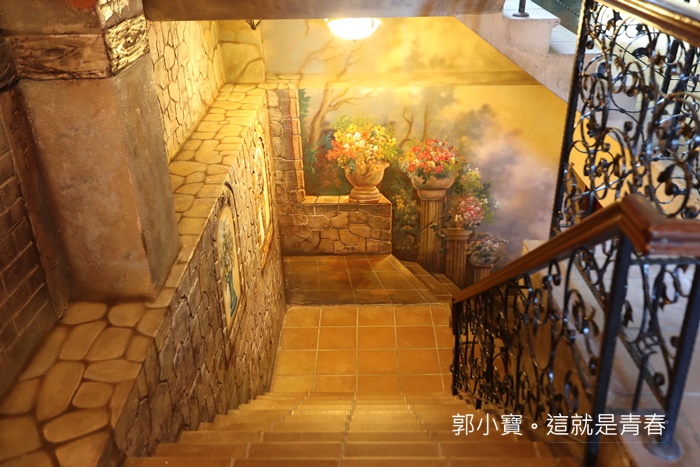 | 這牆面大概是我們拍最多照片的地方了,現場就是一個牆面的樓梯,可以拍起來真的就像是一個室內空間的房間一樣,搭配著暗黃色的燈光,真的會以為來到了歐洲電影般的場景。 |