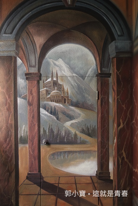 | 走廊盡頭的牆面彩繪彷彿還可以走進去到山林間,真的太厲害了。 |