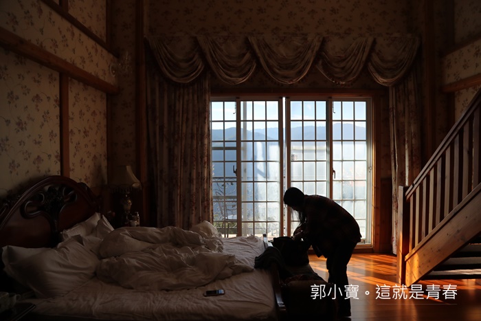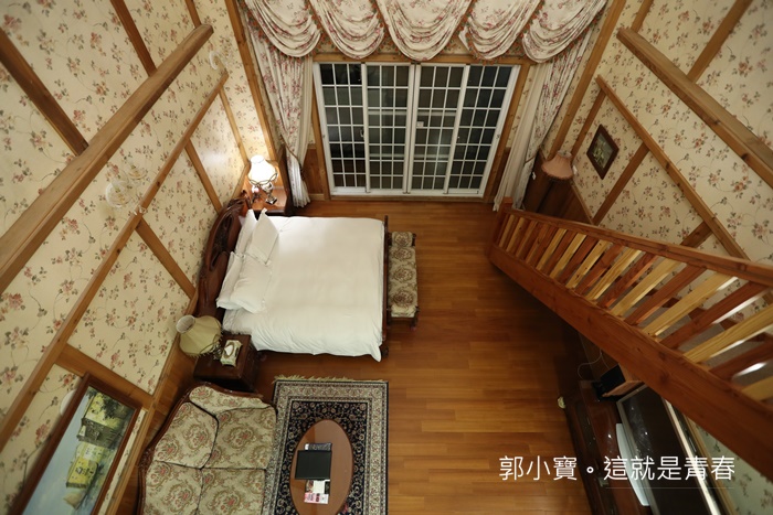 | 從二樓往下看的空間感,我都覺得這如果是我家就好了,真的太漂亮了,簡直都是小木屋的規格了,甚至於比起包棟小木屋更精緻,大部分清境的民宿都沒有冷氣,因為山上就已經很涼爽了,其實我也是建議把拉門打開就很涼了,但是可能有些人比較怕熱,所以房間內還是有提供空調。 |