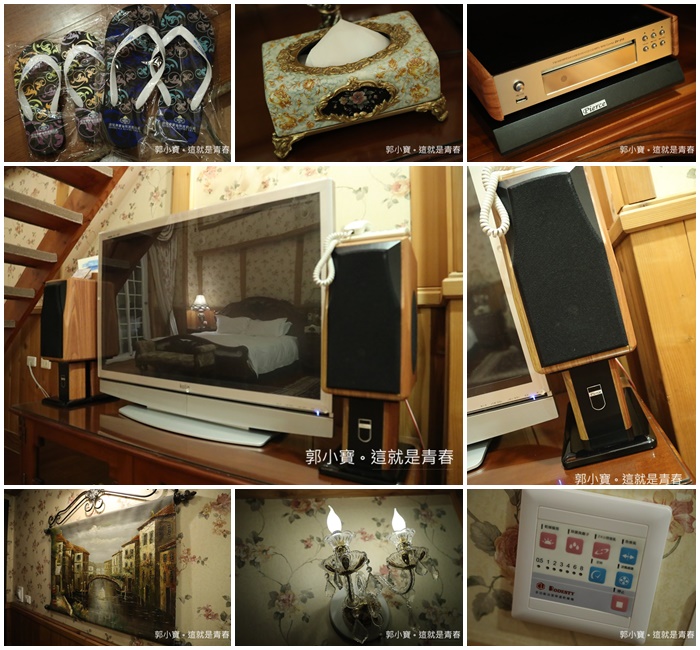| 順便跟大家分享一下它們的小擺件,音響的音質非常好,有提供藍光光碟機,櫃台可以借取影片跟音樂帶,還有面紙盒也超華麗,重點還不是塑膠製的,是陶瓷製頗有重量,檯燈也很復古,任何的小擺件我都好喜歡,有提供房客們戶外的夾腳拖,問了一下人員這夾腳拖是可以帶走的,是送給每一個客人的禮品,這夾腳拖也太可愛了,反而捨不得穿,立馬收進了行李箱。 |