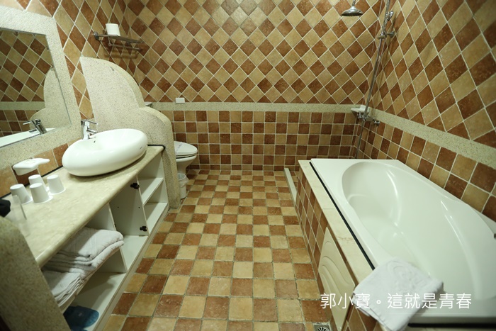 | 淋浴間跟浴缸通通都有,沒有隔離的關係所以空間看起來更大,水壓還滿大的,沖起澡來非常舒服。 |