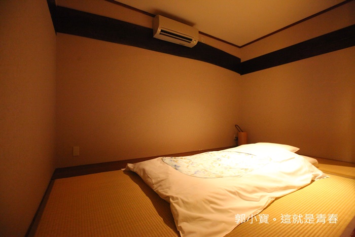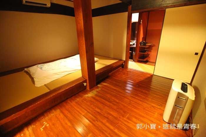 | 一進門就就可以看到分成三個空間,玄關的部分是跟廁所再一起的,然後就是睡覺的地方,睡覺同樣是日式榻榻米,旅館人員已經先把睡墊鋪好床了,這個空間最少至少可以舖兩張床以上。 |