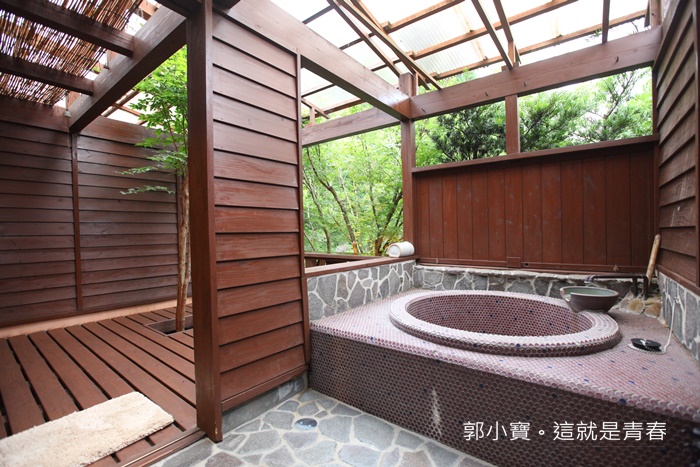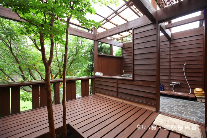 | 因為當天入住已經是晚上了,所以等到早上才拍,最棒的就是這房間有獨立的戶外泡湯區,整間浴室就在森林裡的感覺,除了浴室以外還有庭院的感覺。 |
