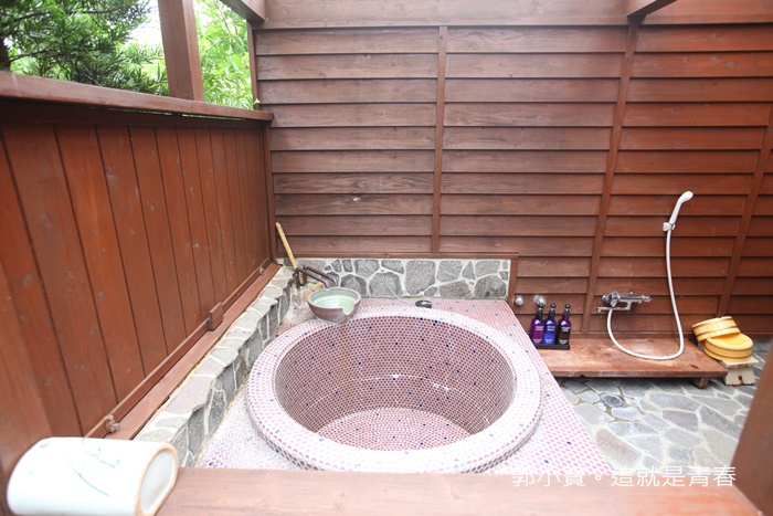| 沐浴用品都準備得很齊全,泡湯池也滿大的又夠深,不習慣跟別人一起裸體泡湯的人就很適合這一間房間了。 |