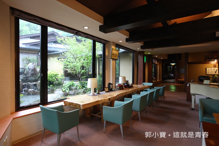 | 大廳布置的有點像是民宿風格,我個人很喜歡的這一間溫泉旅館,大廳有很多大面積的落地窗,窗外都有特別的日式庭園造景。 |