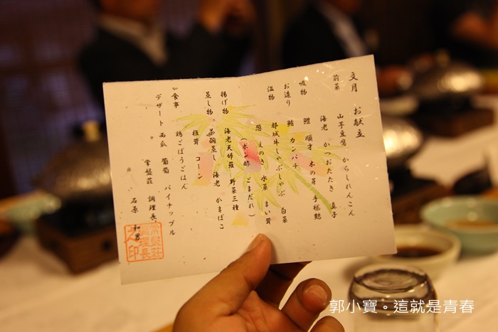 | 常盤裝晚餐提供的也算是會席料理,餐點都會寫在和紙上。 |