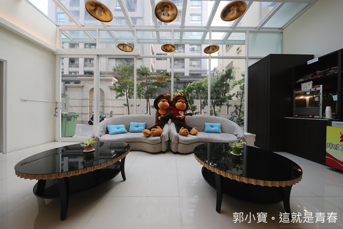 晚上的時候也非常有情調,沙發上的長臂猿是都會商旅認養的動物,壽山動物園的長臂猿就是老闆認養的,真的非常有愛心以外,還把長臂猿做成飯店的吉祥物,很多地方都可以看到長臂猿的設計,如果可以的話,我真的還滿想在這地方喝個下午茶,這地方真的不輸給時下網美咖啡廳的情境了,超喜歡的!