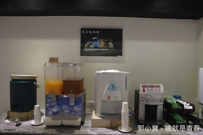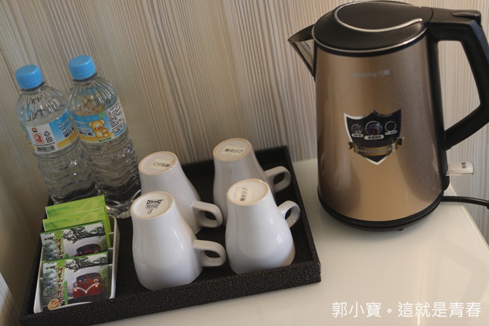 | 有兩瓶礦泉水可以免費飲用以外,還有茶包跟咖啡包,如果你不喜歡咖啡包的話,一樓大廳有現磨的咖啡機,愛怎麼喝就怎麼喝XD |