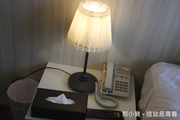| 床頭櫃上有小檯燈跟電話機,真的是麻雀雖小五臟俱全。 |