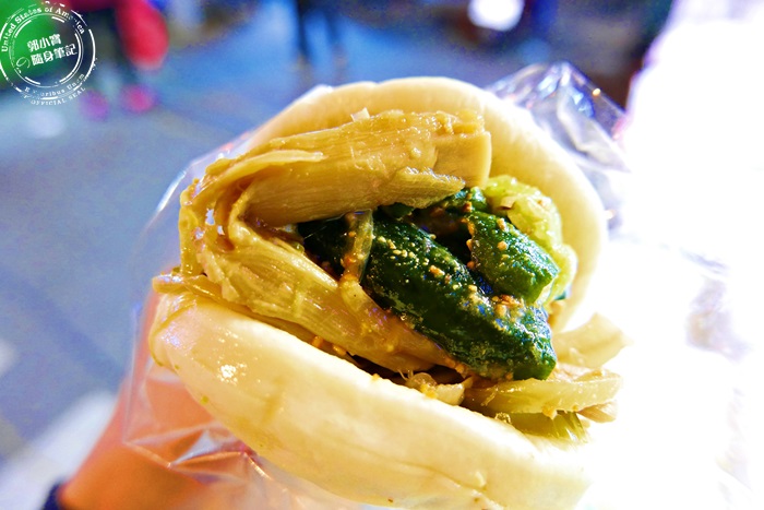 | 他們家的刈包很特別,放入了大量的小黃瓜跟筍乾,撒上的糖粉都已經化在裡頭,小黃瓜跟筍乾都已經先處理過,所以不會有太生的味道,第一次吃到刈包,裡頭的配菜都是艾編喜歡的,小黃瓜的脆口讓整個刈包增添了清爽感,筍乾的酸度,讓人吃了胃口大開,配上糖粉跟花生粉的香甜,滋味超幸福。 |