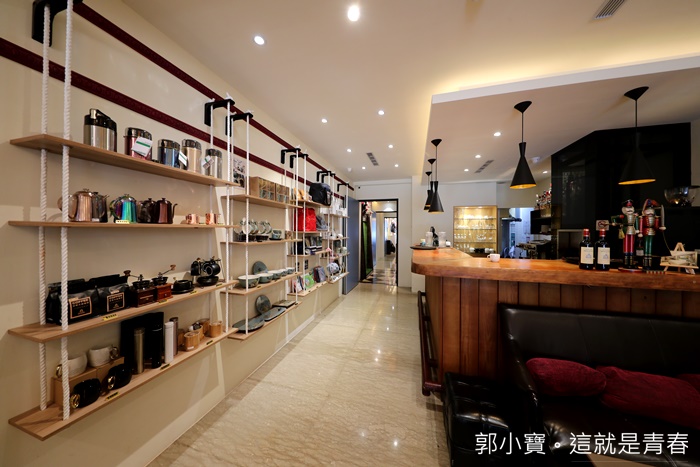 | 右手邊的吧檯依舊,但是另一邊的牆上的一整面的繩結板讓人感覺到有帶點文青感。 |