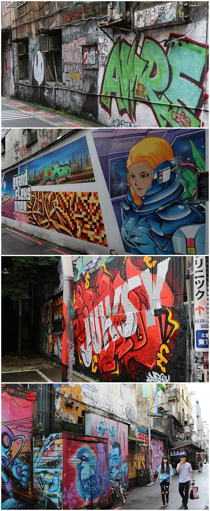 | 被國外媒體選為世界五大街頭藝術城市之一的台北西門町真的是備感榮幸,算是舊街道跟塗鴉人的藝術創作融合最精采的區域,西門町呈現的風貌非常多樣化,也是吸引很多外國人士的隱密巷弄,巷弄內也有很多特色小店舖,跟西門町中心的車水馬龍情景比起來真的有天跟地的差別。 |
