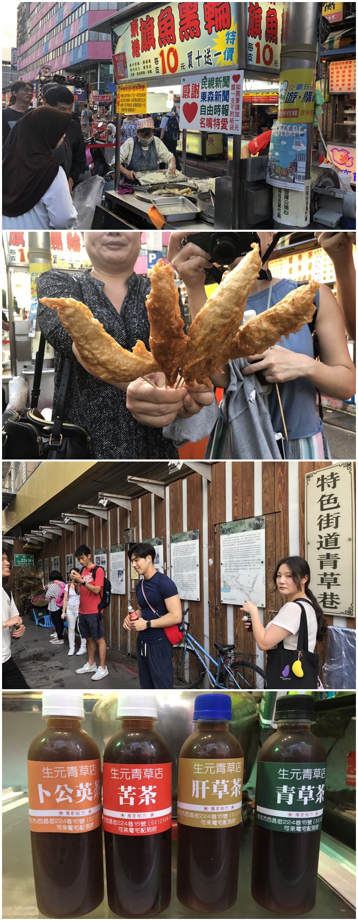 | 沿路吃了好幾家推薦美食跟小吃,但是我個人最喜歡的還是龍山寺旁青草巷,這青草巷我以前真的都不知道,真的是靠旅服中心的女孩兒們告知我才知道原來龍山寺還有這些的草藥,除了喝了古法釀製的草飲以外,我們在觀光夜市最受歡迎的小吃就是這超大一根的旗魚黑輪,重點這一根才10元,超多人在排隊的,連外國朋友都覺得好吃又超便宜的!!!! |
