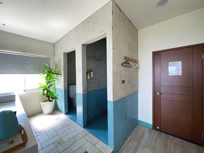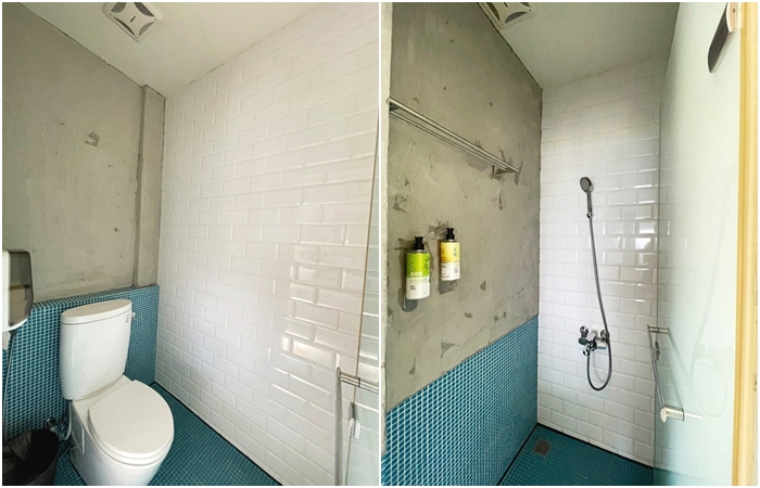 | 淋浴間跟廁所都是簡單乾淨沒有太多裝修,沐浴乳跟洗髮乳都是固定式在牆上了。 |