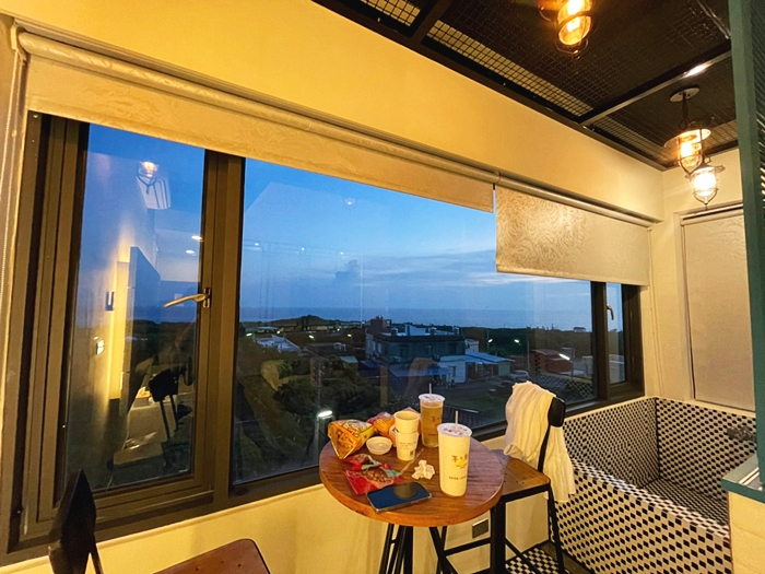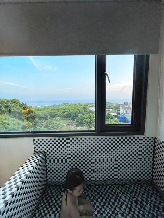 | 外推的陽台變身小觀賞區跟泡澡浴缸,可以一邊泡草一邊看海景,還滿不錯的,窗戶外沒有其他建築遮蔽物,所以可以一眼望到海洋。 |