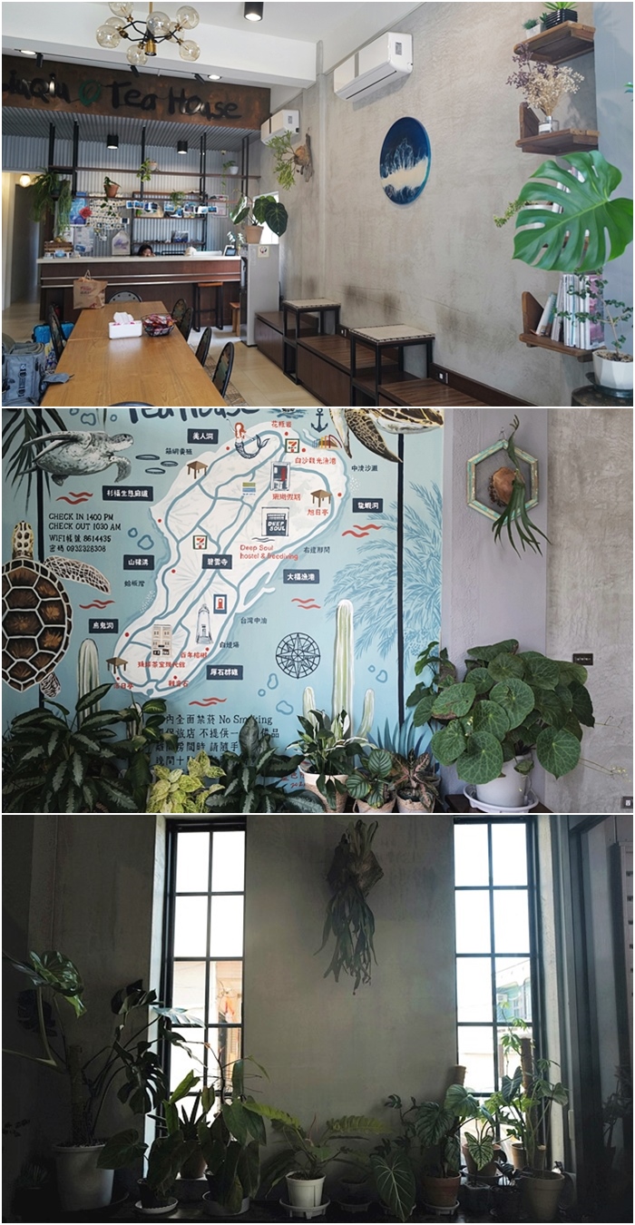 | 琉球茶室分為現代館跟復古館,兩間獨棟透天是併在一起的,是老建築重新拉皮改裝的民宿,改裝後的感覺還滿不錯的,一樓接待大廳很舒服,帶點輕工業風的感覺,入內需要脫鞋,桌上還有免費的麻荖可以吃,一樓也是交誼廳。 |