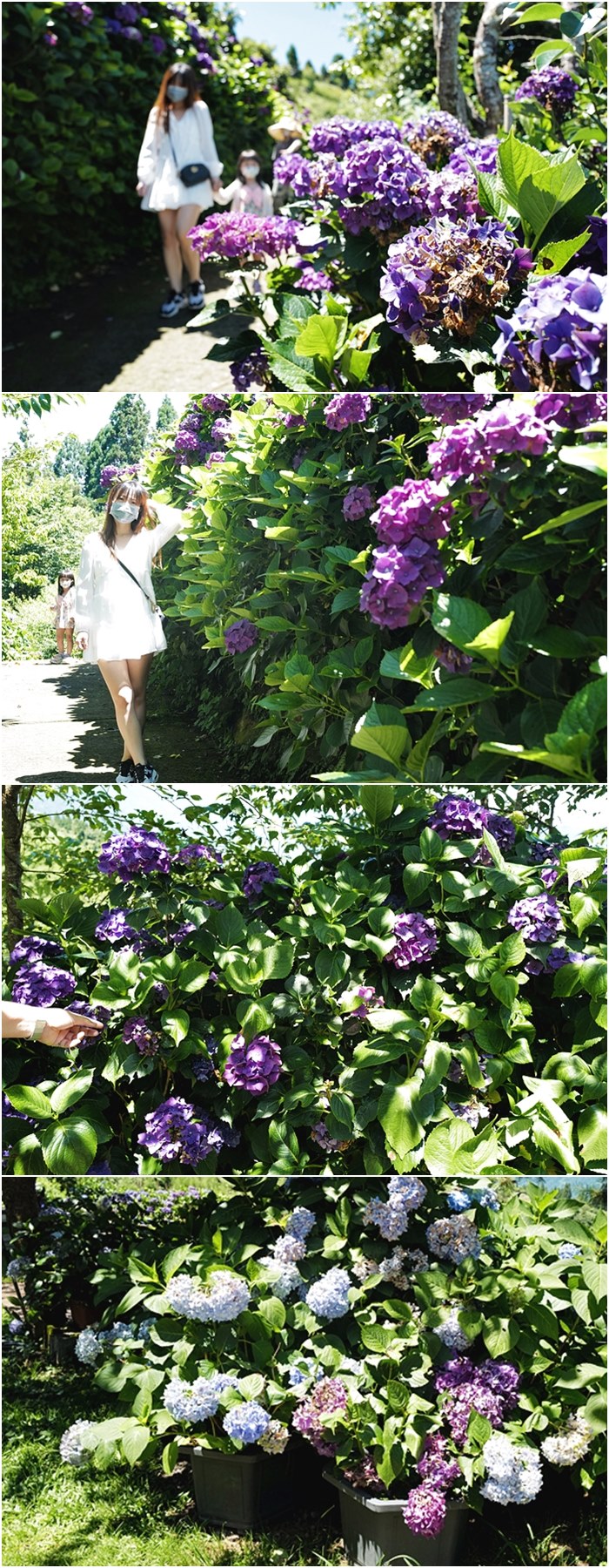 | 走到最後會看到一整個山坡的繡球花,讓人眼睛為之一亮,這整片山坡的繡球花也太美了,喜歡與花朵拍照的女紙們可有福了,這邊隨便拍都超美的,加上山上的陽光充足,隨便拍都美到極點。 |