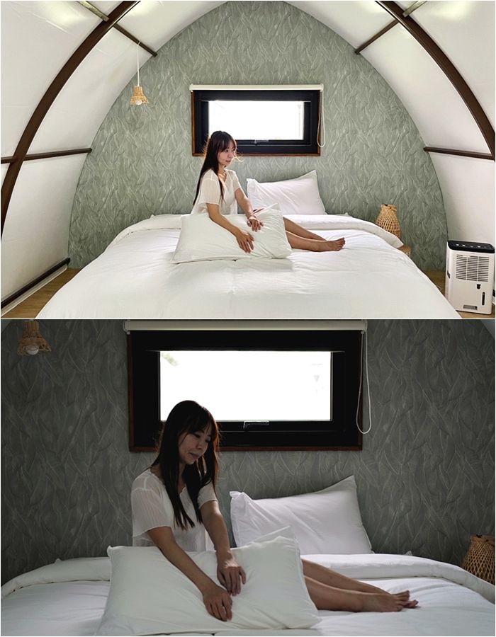 | 打開門後感覺非常溫馨,有露營的感覺又有民宿的氛圍,空間大小也剛剛好適合我們一家人,而且可以加床,因為Onetrip玩趣旅遊平台是提供雙人床,所以加床可能會產生額外的費用。 |