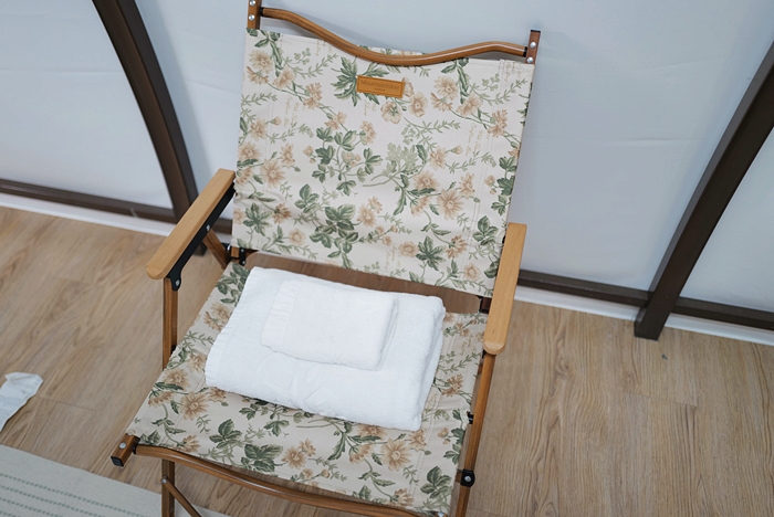 | 躺椅上有毛巾跟浴巾等物品,綠野仙蹤的盥洗空間就在同樓層的公共盥洗室,同樣打掃得很乾淨。 |