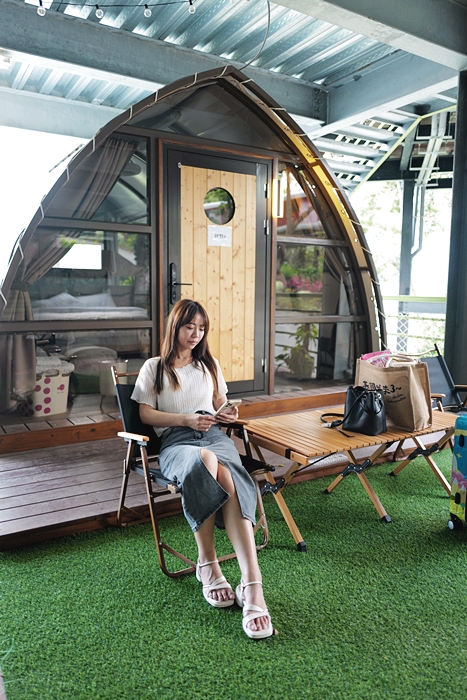 | 我個人一直沒有熱愛露營的心,所以這種類露營的就是我們的首選,讓女兒可以稍微體驗一下露營即可,綠野仙蹤的帳篷是用鋼構加上帆布搭建而成的,一整面的透明玻璃看起來非常時尚。 |