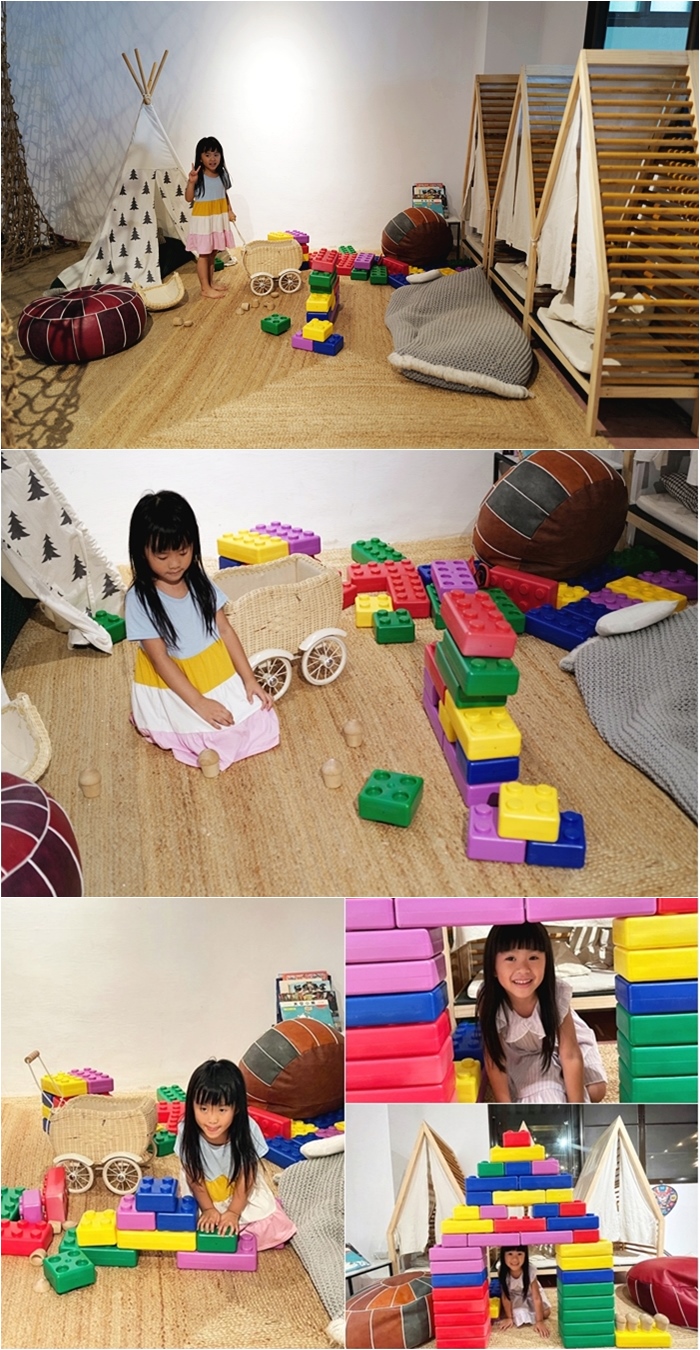 | 可愛積木區也很受小朋友歡迎,小小孩可以在這邊爬也不用擔心。 |