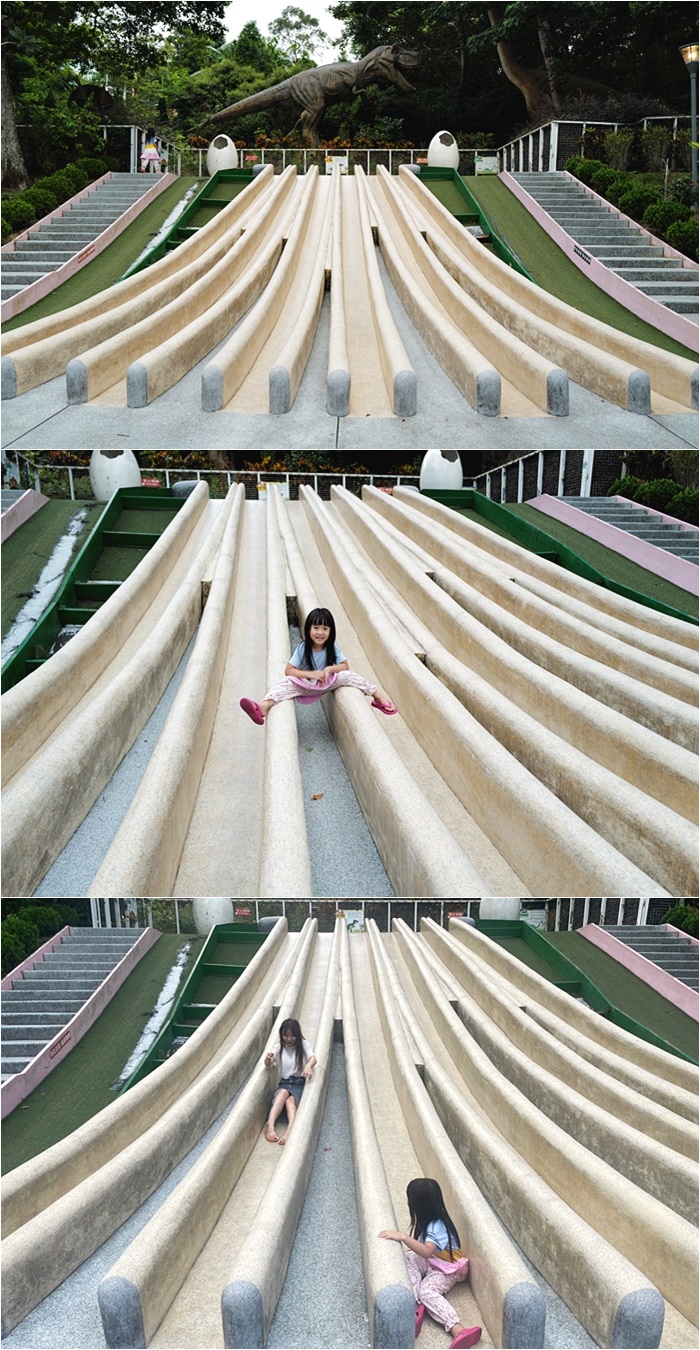 | 恐龍溜滑梯也很受歡迎,一次六條滑梯,再多小朋友也不用擔心塞住,女兒同樣溜到一個超盡興。 |