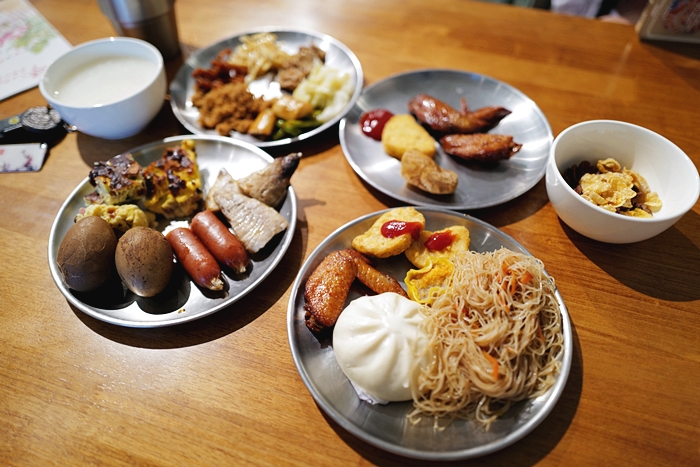 | 走一輪回來就醫滿桌子的早餐菜色,我們也滿會吃的XDDD |