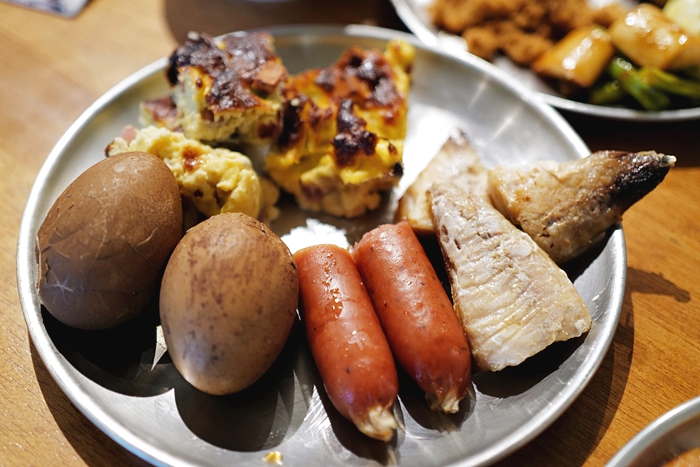 | 早餐是自助吧式的早餐,餐點的內容還算豐富,比一般的民宿自助餐多了很多選擇。 |