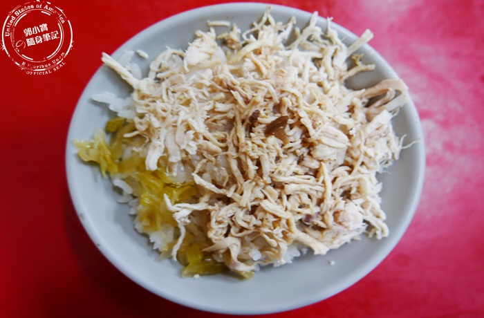 | 他們家雞肉飯上頭鋪的是雞肉絲,放點酸菜再淋上滷汁,就是這麼的單純,雞肉絲給的也蠻多的,整體拌勻後,米飯吸收了滷汁的鹹香,又Q又夠味,再加上雞肉一絲一絲的口感,跟酸菜的爽脆酸勁,清爽有層次,完全不油不膩,一口接著一口,大口扒飯超滿足的。 |
