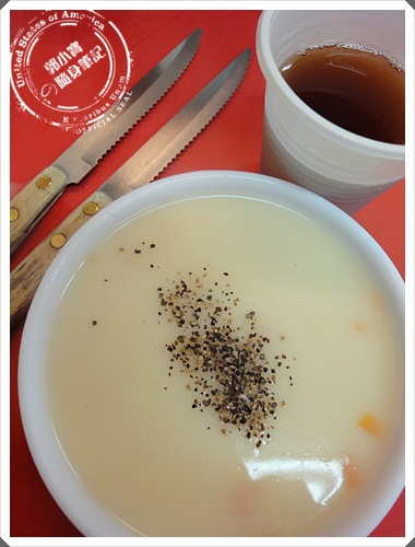湯跟飲料都是自取,濃湯就是一整個很古早味的玉米濃湯,
