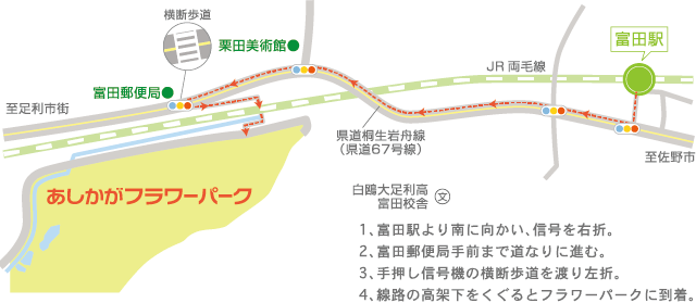 我們是搭乘東武電車,需要到達北千住車站直接搭乘東武特急,車票也是最便宜的計價,大概單程在2200円左右,到達東武電車的足利站後,大概步行15分鐘到達JR足利站,換搭乘JR兩毛線小山行方向,一站就會到富田了,從北千住出發到富田大約需要2小時左右。