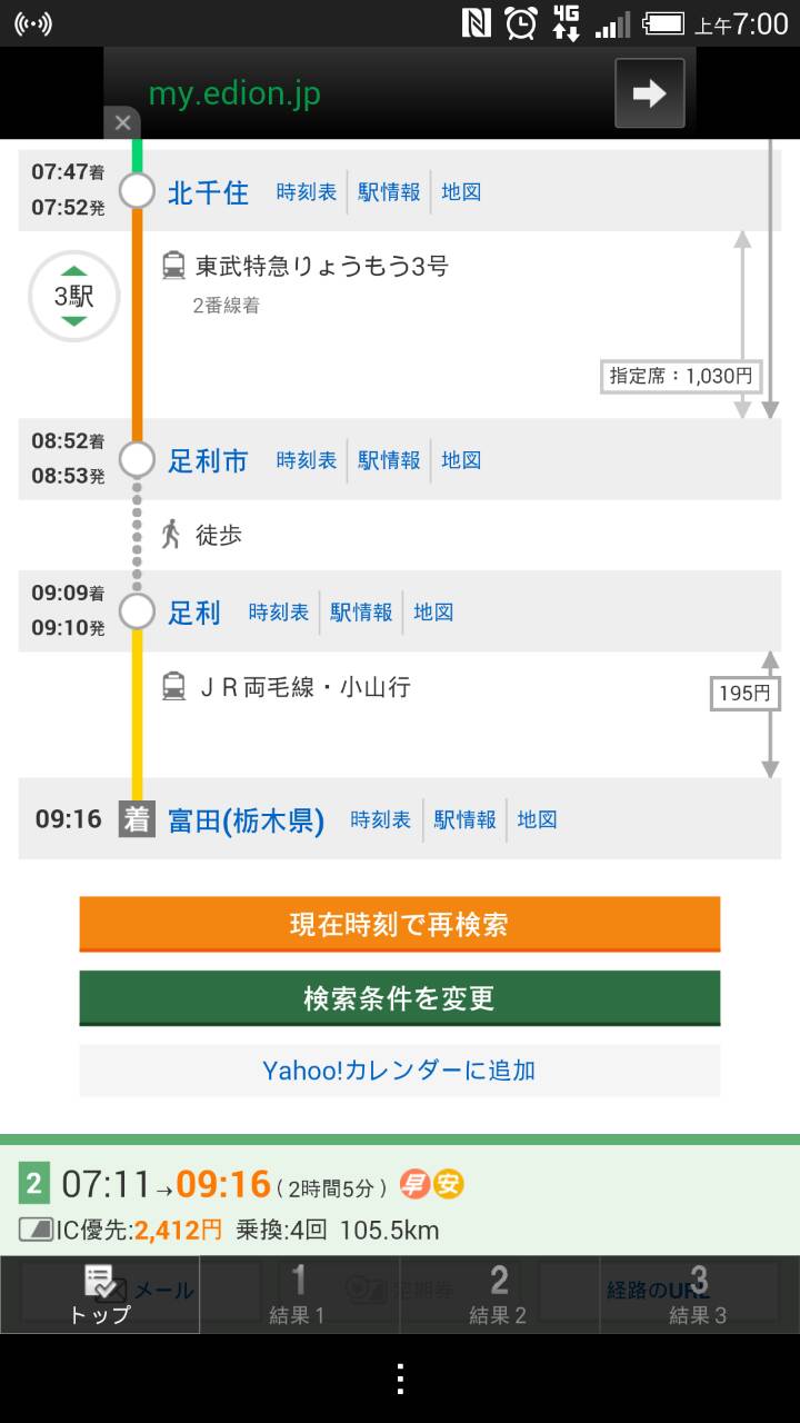 PS:轉乘案內建議的全部都是搭乘東武電車,程式並不推薦東京搭乘JR到達富田,東武電車確實在北關東地區的路線跟密度比起JR來說是相對的密集很多,而且東武足利站漫步到JR足利站這一段路還滿不錯的,渡過了大鐵橋周邊相當美麗,沿路相當的有寧靜老街味道。